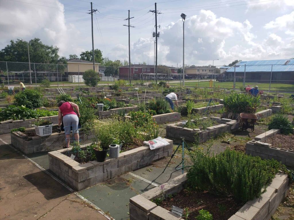 In 2013, former MGGNO President Cynthia Metcalf drove past an abandoned tennis court on the then-recently closed Naval Support Activity New Orleans base in Algiers and had a vision of turning that unused parcel of land into a thriving community garden. She enlisted the help of fellow garden enthusiast, Miranda Bashaw (LMG, Class 2017), and the two began working to make Cynthia’s vision a reality. With the generous support of several local civic organizations, grants from a few organizations, and the hard work and dedication of several community volunteers, Federal City Community Garden began to take shape. In 2016, when Cynthia relocated out of New Orleans, long-time MGGNO member Charlotte Baham (LMG, Class 1998) took over as Project Lead; together with Miranda, the two have managed the garden ever since.